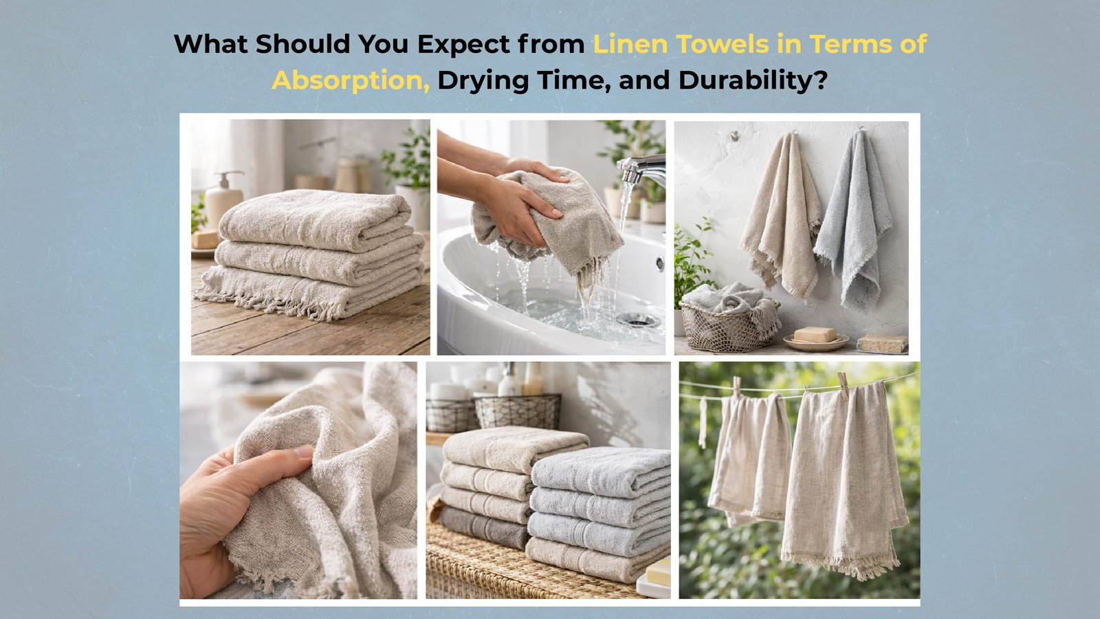 What Should You Expect from Linen Towels? Absorption, Drying Time, and Durability What Should You Expect from Linen Towels in Terms of Absorption, Drying Time, and Durability? You should expect